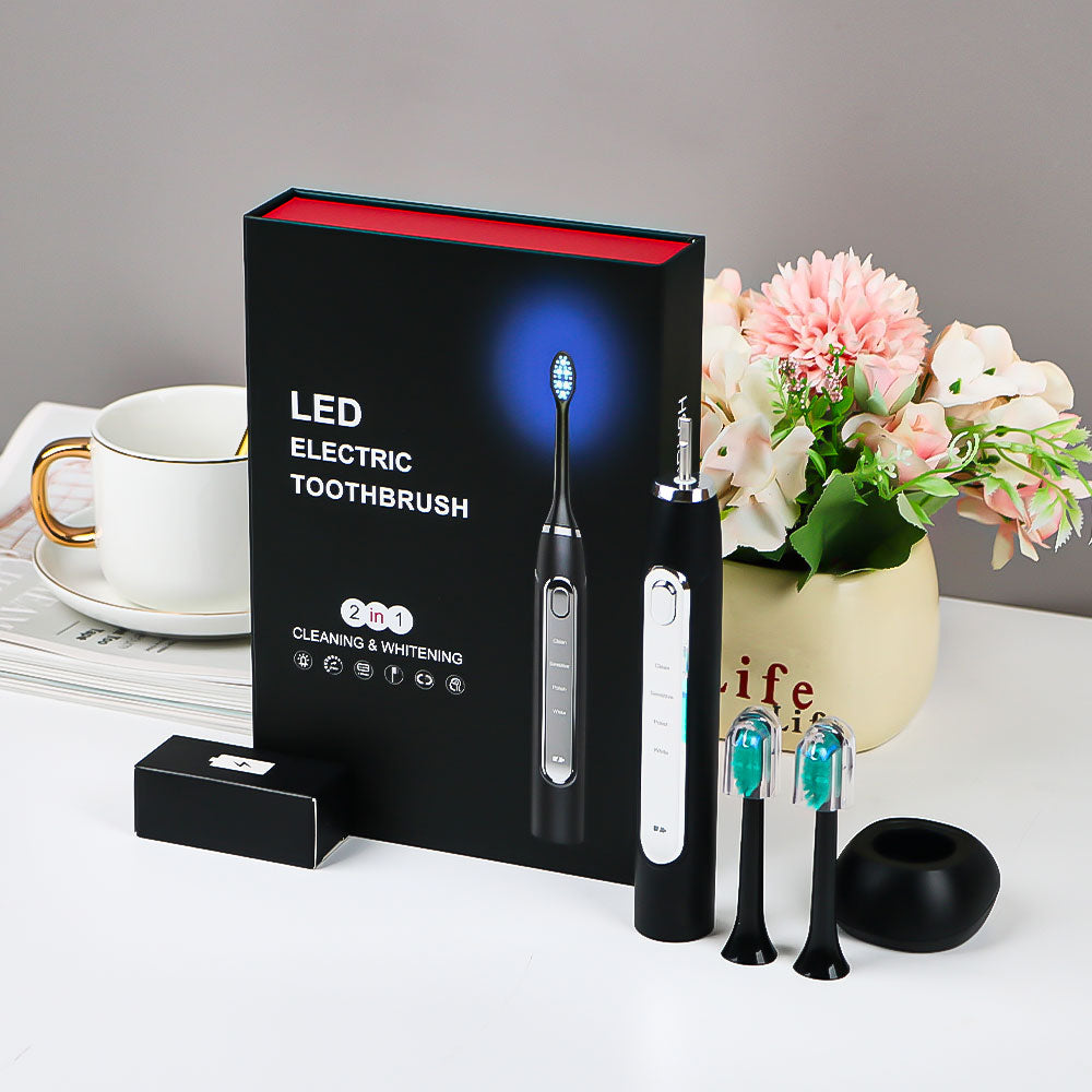 AURA SMILE היא מברשת מהפכנית עם טכנולוגיית LED שמסירה כתמים בזמן הצחצוח – מבלי לפגוע באמייל, אפילו להפך: היא מחזקת אותו.