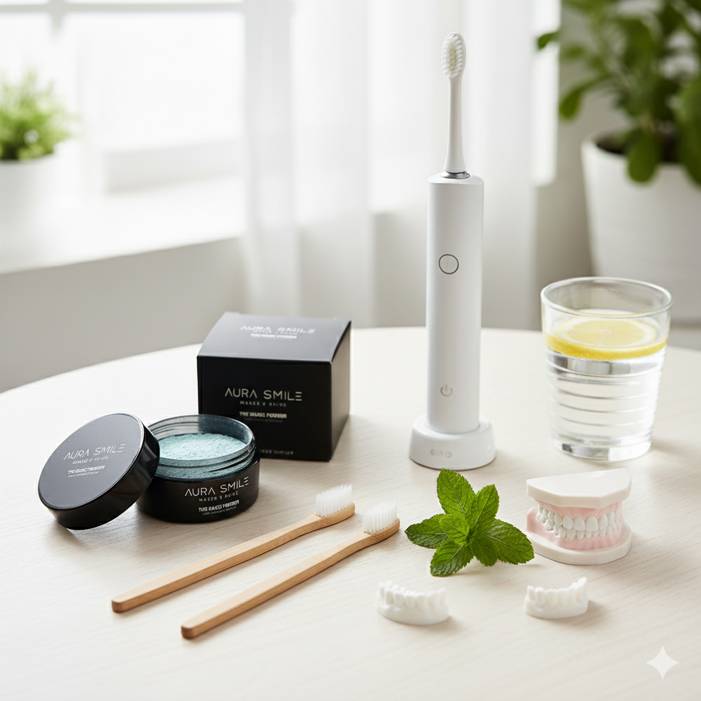 •אבקת ההלבנה וההיגיינה הייחודית של AURA SMILE